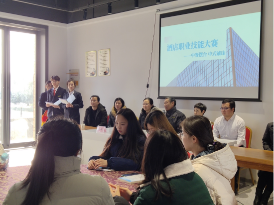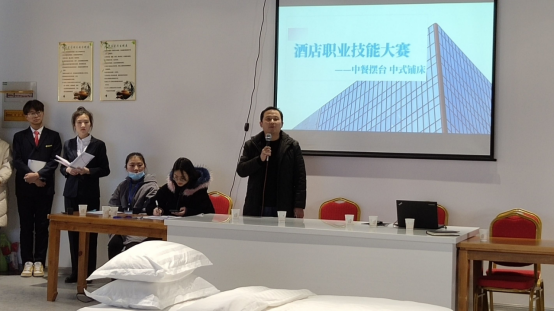 2020年12月18日下午14:00,yL23411永利集团官网千百度旅游协会在本相茶公司举办了第一届酒店职业技能大赛,竞赛项目有:中餐主题宴会摆台和中式铺床。酒店职业技能大赛旨在通过比赛形式,使本专业员工将所学理论知识和技能更好的应用于社会实践,深化员工的技能学习意识,提高同学们的专业技能,增强专业自豪感和荣誉感。
