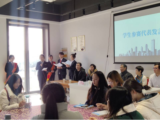 接下来是企业代表发言。首旅如家酒店集团商旅事业部华中大区总经理郭园苑女士对本次大赛表示了诚挚的祝福,并给我们带来了酒店行业前端的信息,为参赛选手加油鼓气。